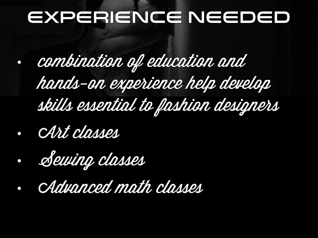 combination of education and hands-on experience help develop skills essential to fashion designers