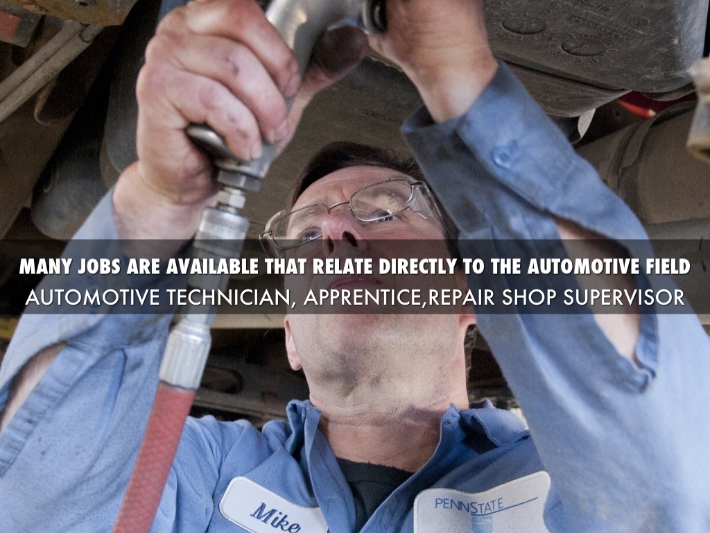 MANY JOBS ARE AVAILABLE THAT RELATE DIRECTLY TO THE AUTOMOTIVE FIELD