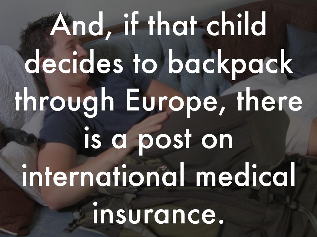 And, if that child decides to backpack through Europe, there is a post on international medical insurance.
