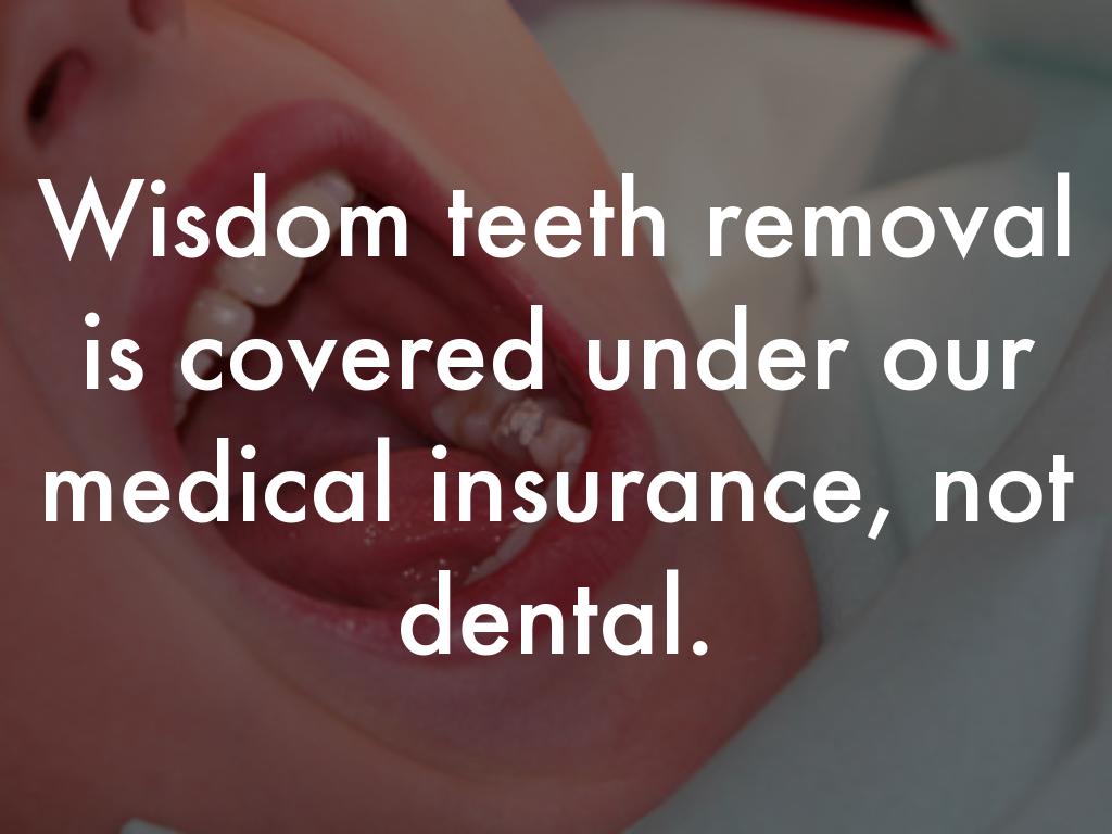 Wisdom teeth removal is covered under our medical insurance, not dental.