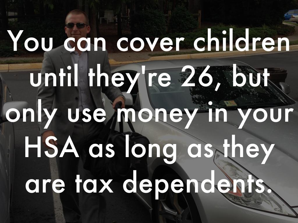 You can cover children until they're 26, but only use money in your HSA as long as they are tax dependents.