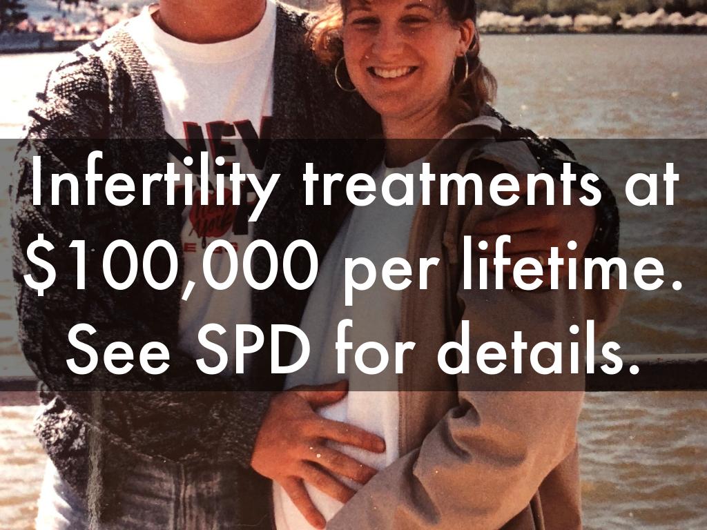 Infertility treatments at $100,000 per lifetime. See SPD for details.