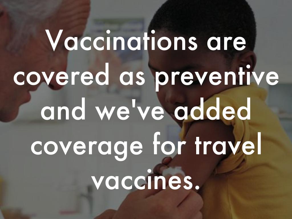 Vaccinations are covered as preventive and we've added coverage for travel vaccines.
