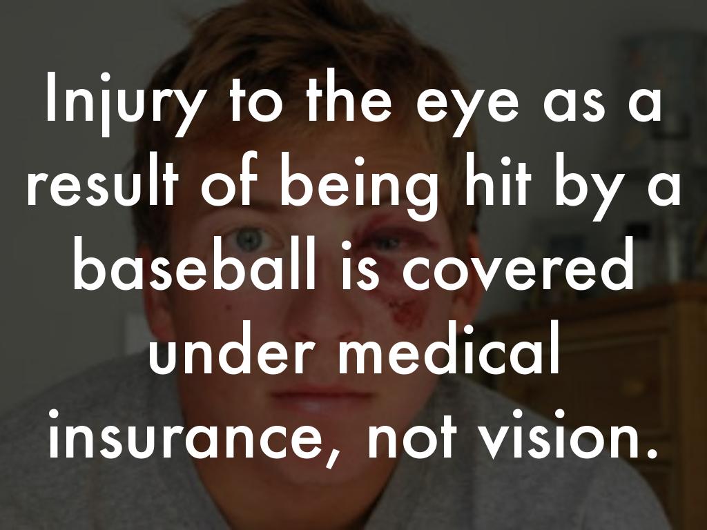 Injury to the eye as a result of being hit by a baseball is covered under medical insurance, not vision.