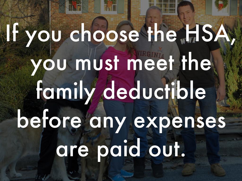 If you choose the HSA, you must meet the family deductible before any expenses are paid out.