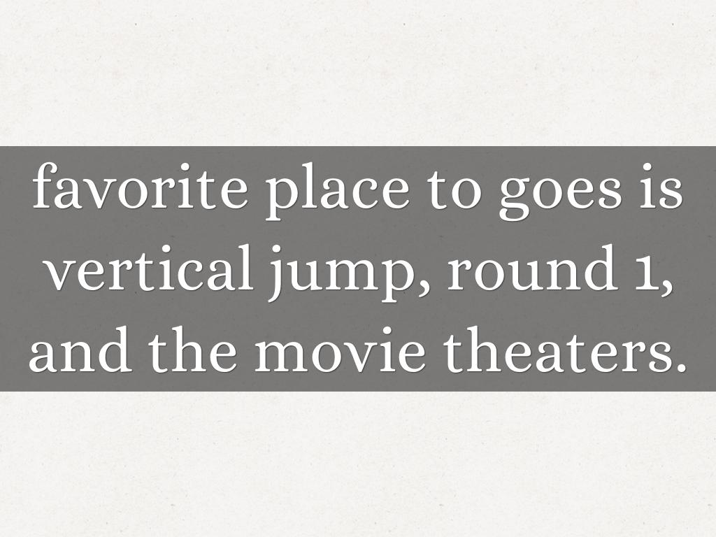 favorite place to goes is vertical jump, round 1, and the movie theaters.