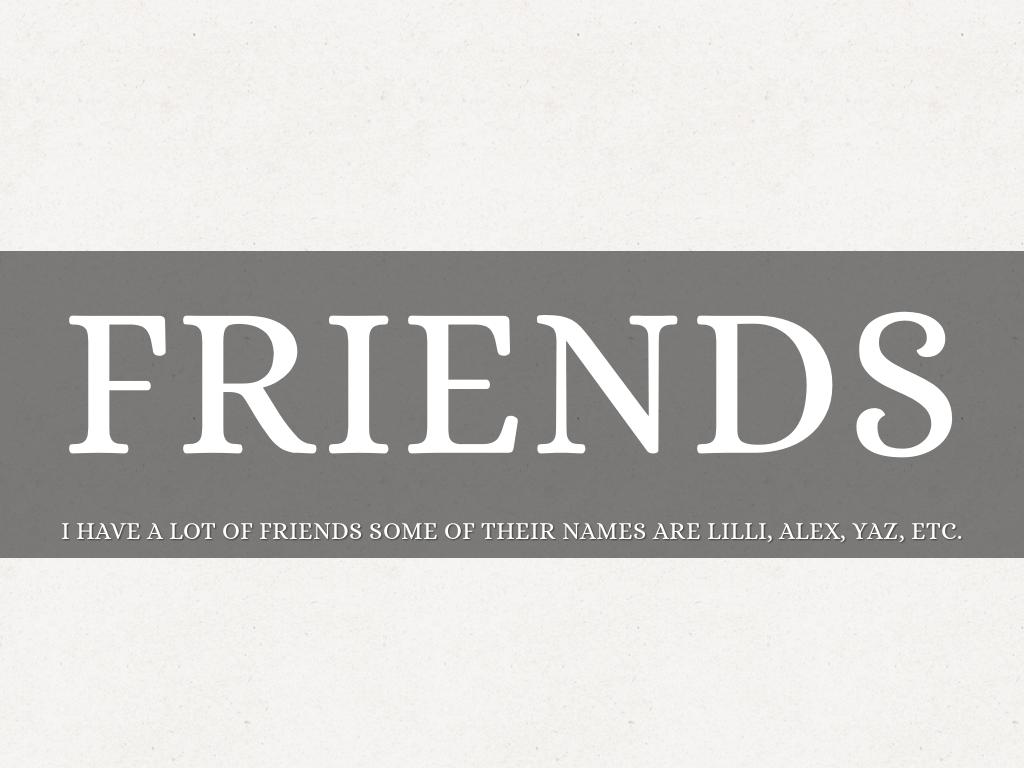 i have a lot of friends some of their names are lilli, alex, yaz, etc.