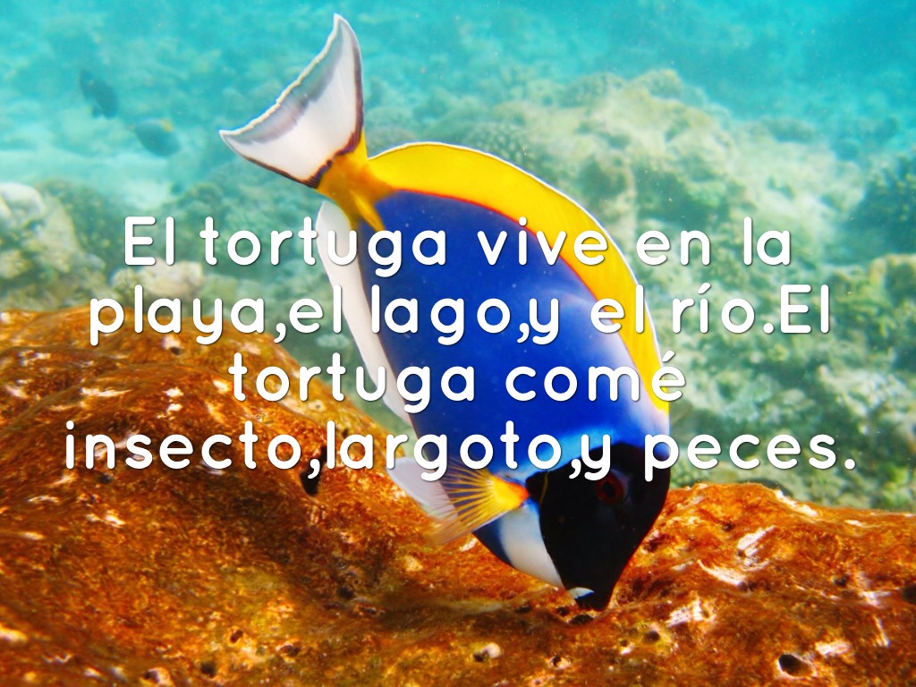 El tortuga vive en la playa,el lago,y el río.El tortuga comé insecto,largoto,y peces.
