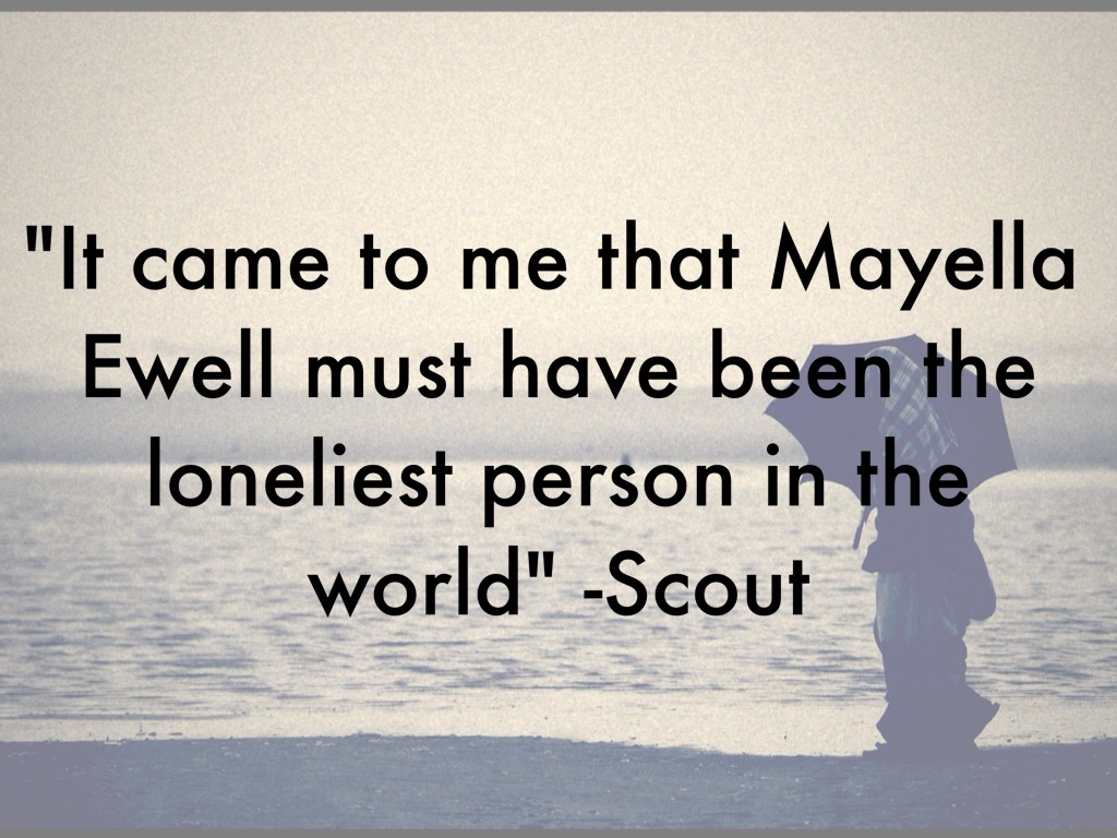 "It came to me that Mayella Ewell must have been the loneliest person in the world" -Scout