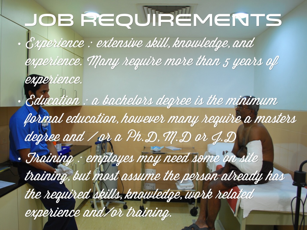 Experience : extensive skill, knowledge, and experience. Many require more than 5 years of experience.