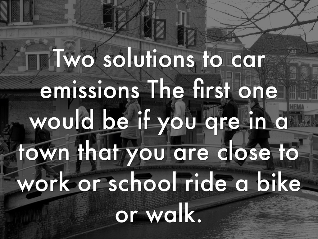 Two solutions to car emissions The first one would be if you qre in a town that you are close to work or school ride a bike or walk.