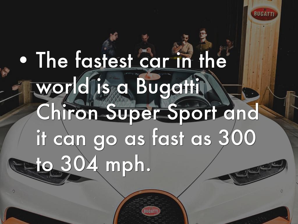 The fastest car in the world is a Bugatti Chiron Super Sport and it can go as fast as 300 to 304 mph.