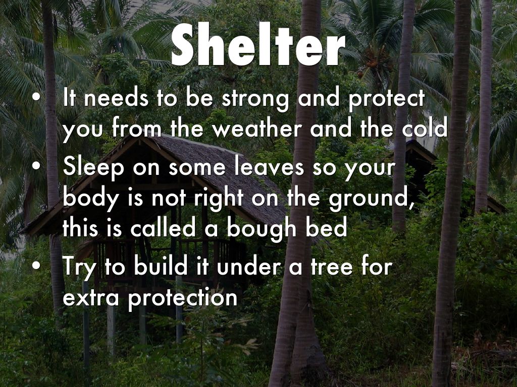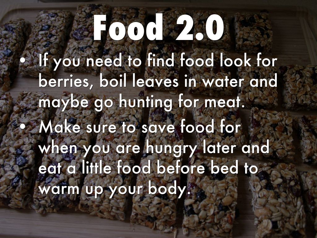 If you need to find food look for berries, boil leaves in water and maybe go hunting for meat.