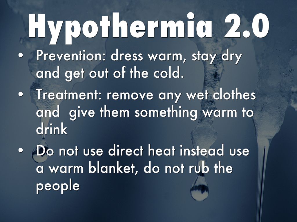 Who is at risk? People in 10*C for a long time, in water at 20*C, babies and young children and people with low body fat.