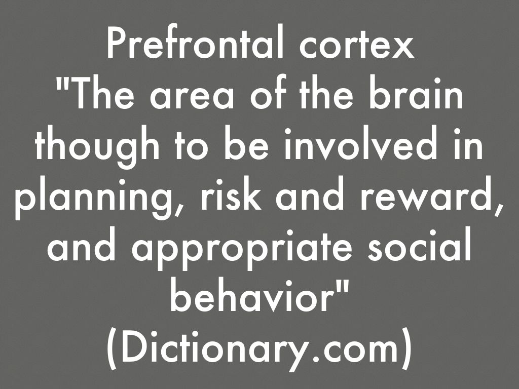 "The area of the brain though to be involved in planning, risk and reward, and appropriate social behavior"