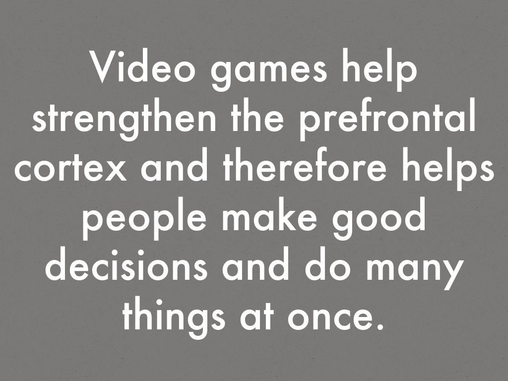 Video games help strengthen the prefrontal cortex and therefore helps people make good decisions and do many things at once.