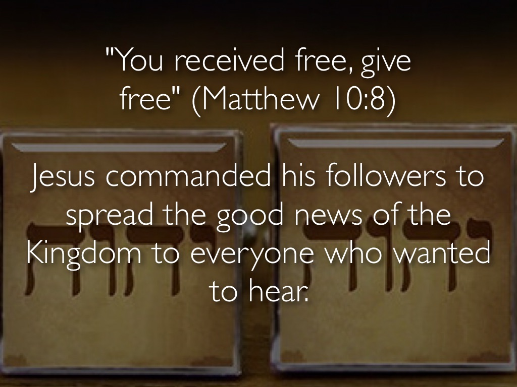 Jesus commanded his followers to spread the good news of the Kingdom to everyone who wanted to hear.
