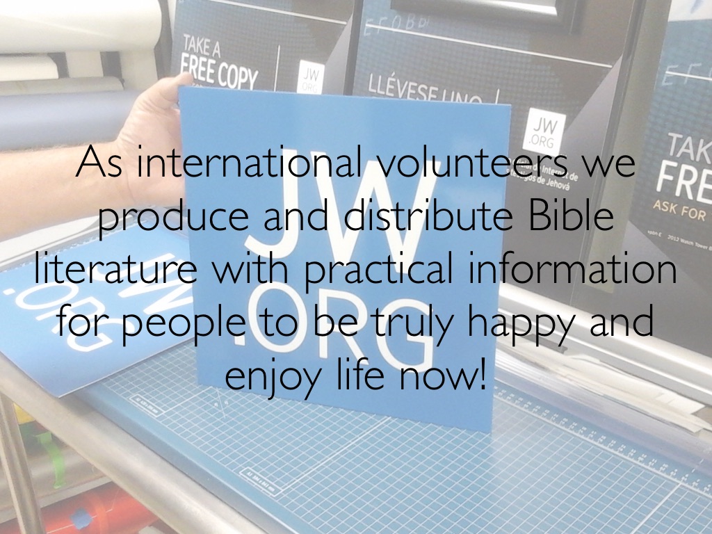 As international volunteers we produce and distribute Bible literature with practical information for people to be truly happy and enjoy life now!