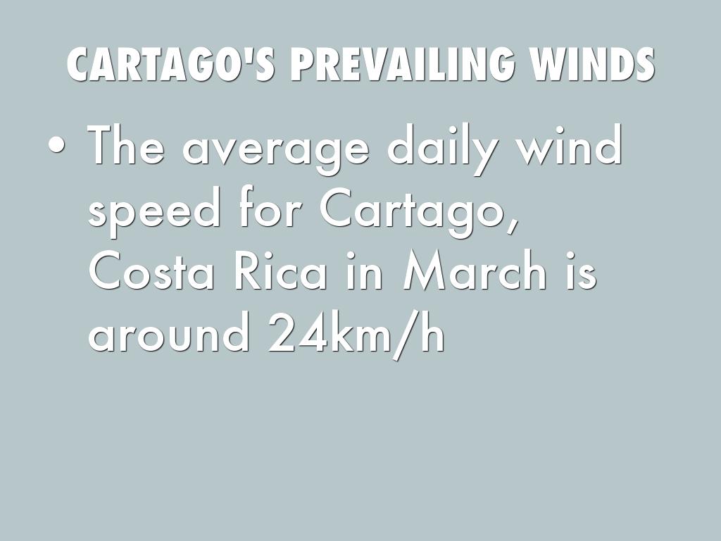 • The average daily wind speed for Cartago, Costa Rica in March is around 24km/h