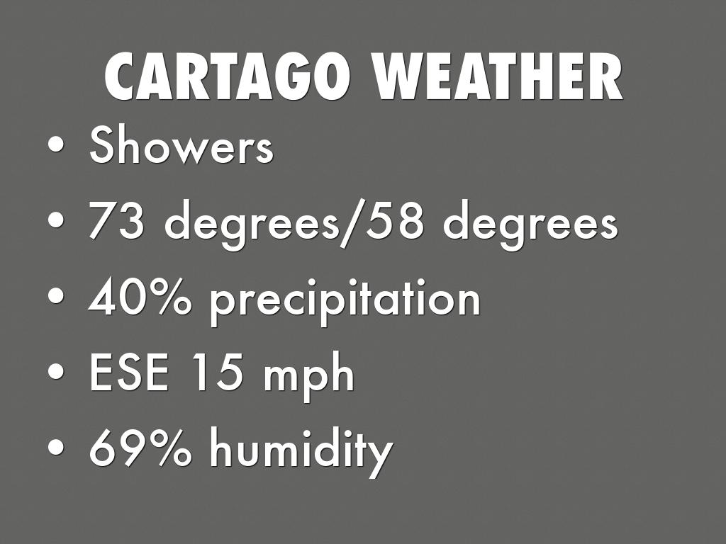 • Cartago's longitude/latitude is 9.8638° N, 83.9162° W