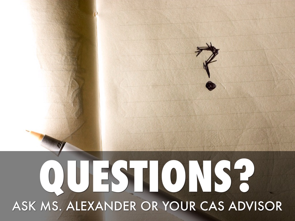 ASK MS. ALEXANDER OR YOUR CAS ADVISOR