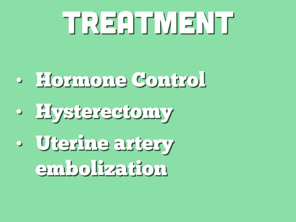 Complains of heavy, painful menstrual periods, bleeding between cycles.