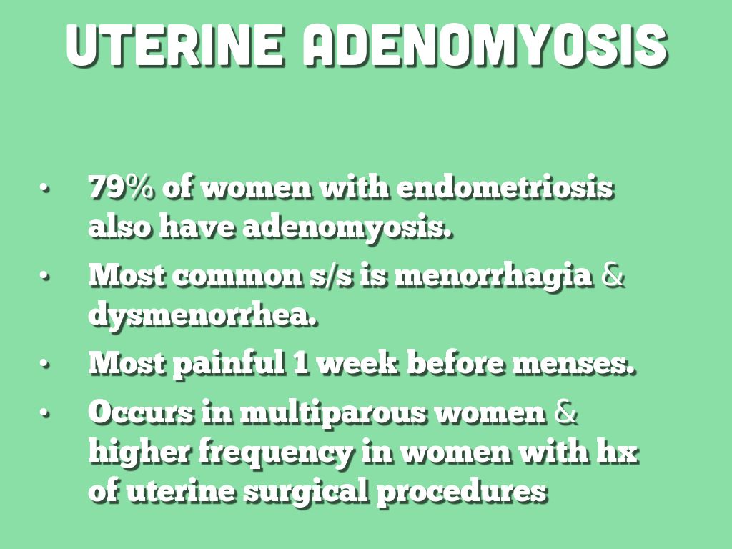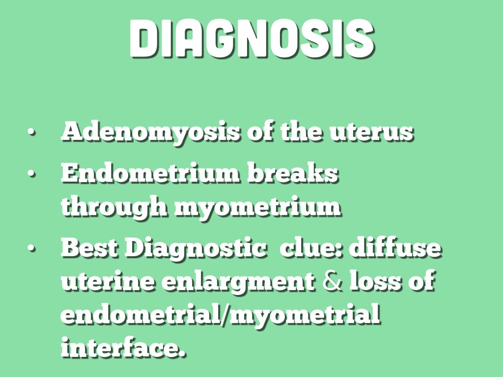 Best Diagnostic clue: diffuse uterine enlargment & loss of endometrial/myometrial interface.