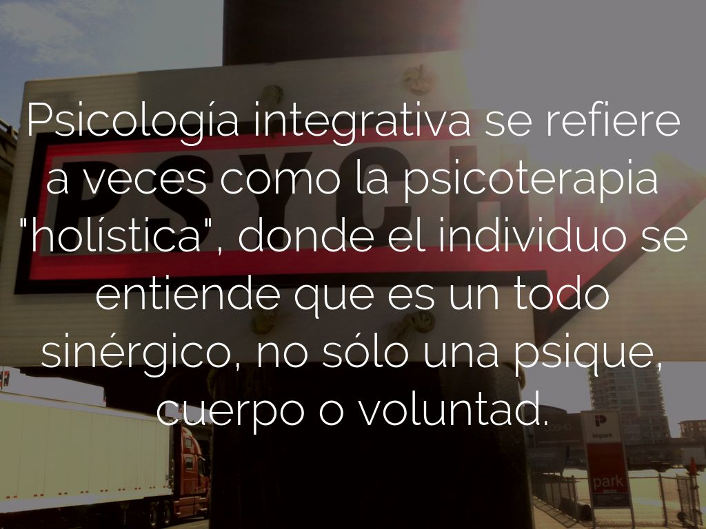 Psicología integrativa se refiere a veces como la psicoterapia "holística", donde el individuo se entiende que es un todo sinérgico, no sólo una psique, cuerpo o voluntad.
