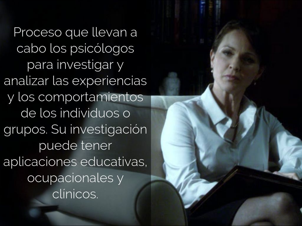 Proceso que llevan a cabo los psicólogos para investigar y analizar las experiencias y los comportamientos de los individuos o grupos. Su investigación puede tener aplicaciones educativas, ocupacionales y clínicos.