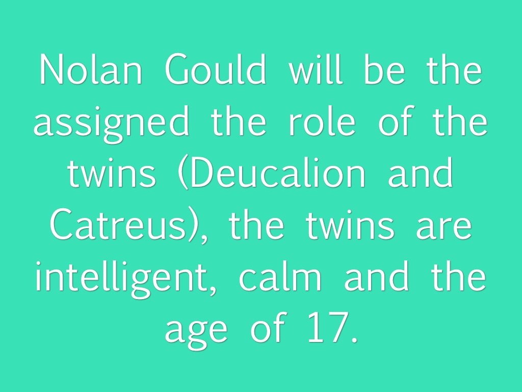 Nolan Gould will be the assigned the role of the twins (Deucalion and Catreus), the twins are intelligent, calm and the age of 17.