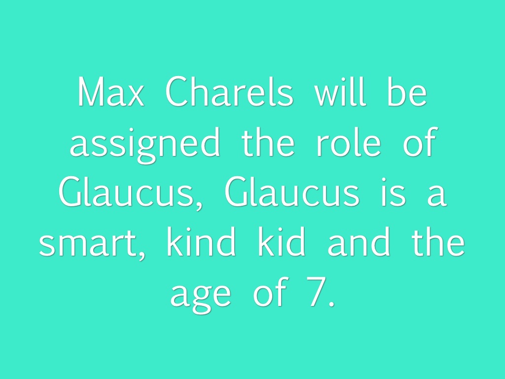 Max Charels will be assigned the role of Glaucus, Glaucus is a smart, kind kid and the age of 7.