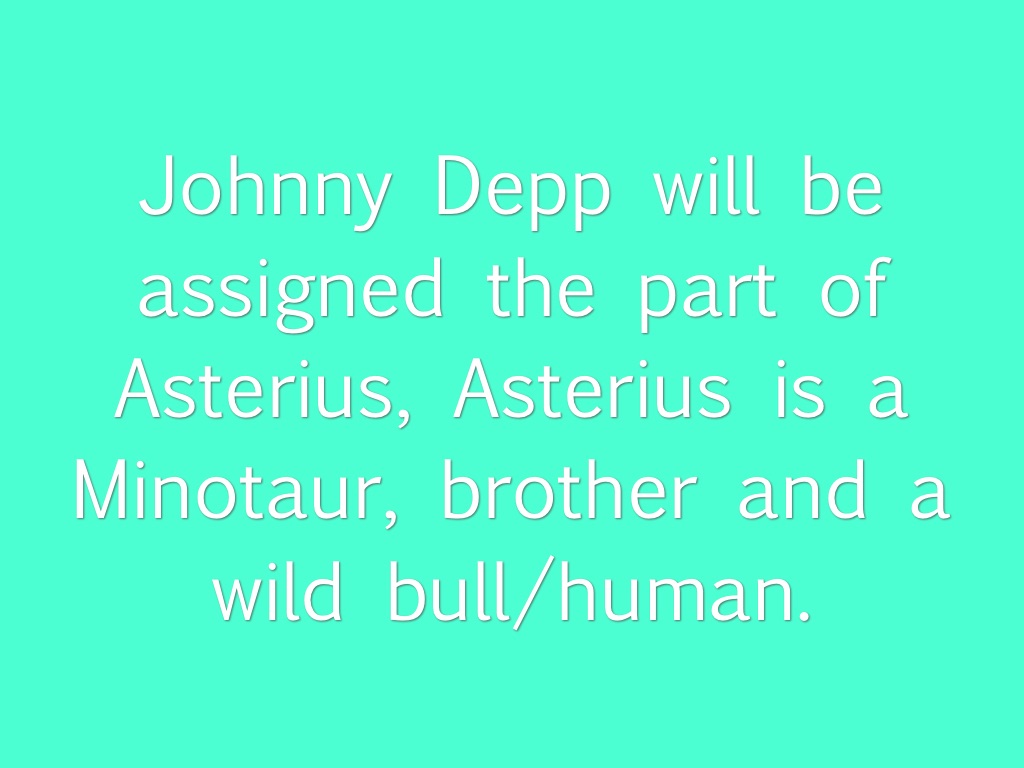 Johnny Depp will be assigned the part of Asterius, Asterius is a Minotaur, brother and a wild bull/human.