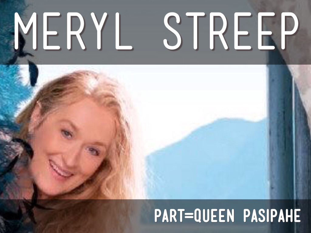 Meryl Streep will be playing the part of Queen Pasiphae, the Queen is a hard working woman, mother of ten and a wife.