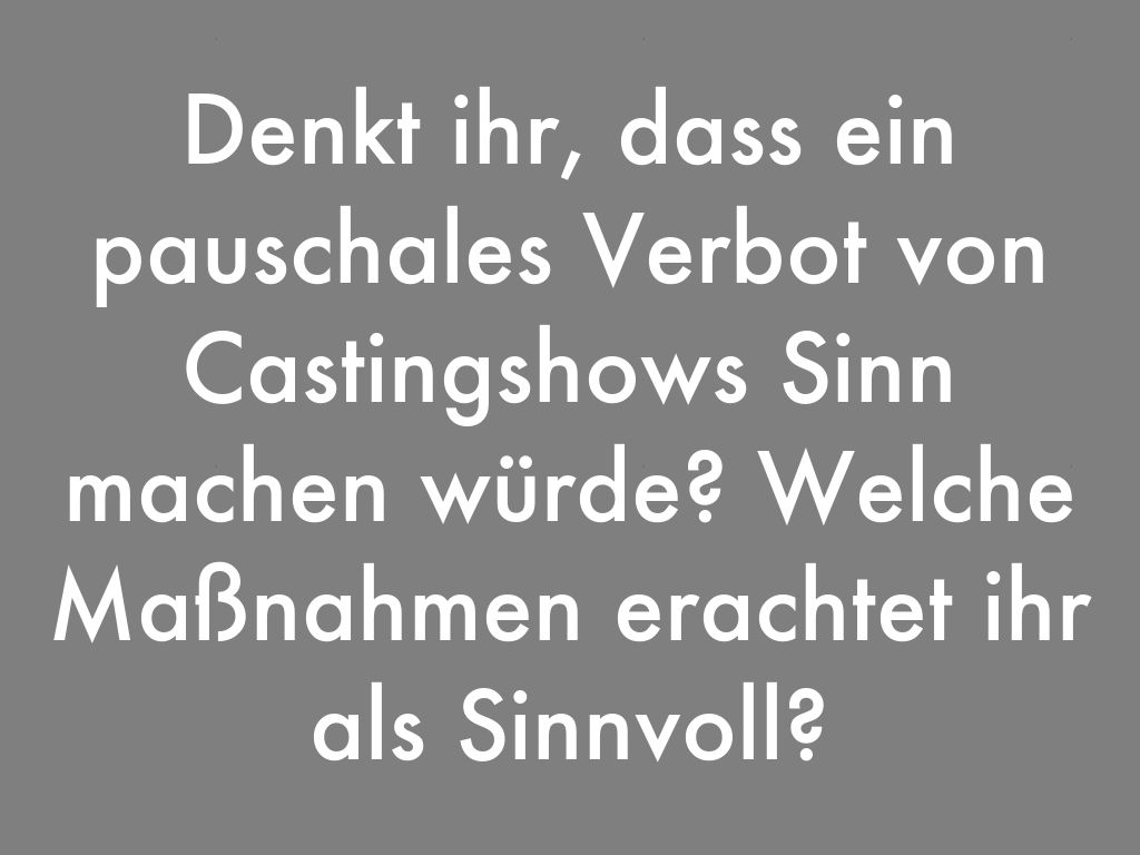 Denkt ihr, dass ein pauschales Verbot von Castingshows Sinn machen würde? Welche Maßnahmen erachtet ihr als Sinnvoll?