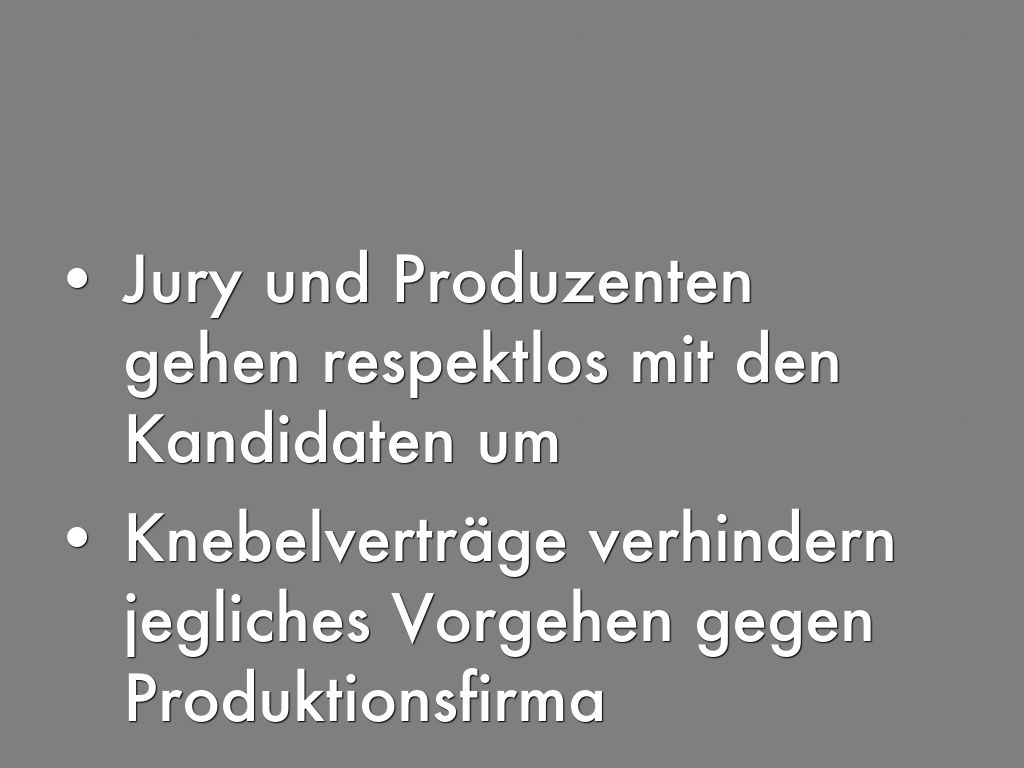 - Jury und Produzenten gehen respektlos mit den Kandidaten um