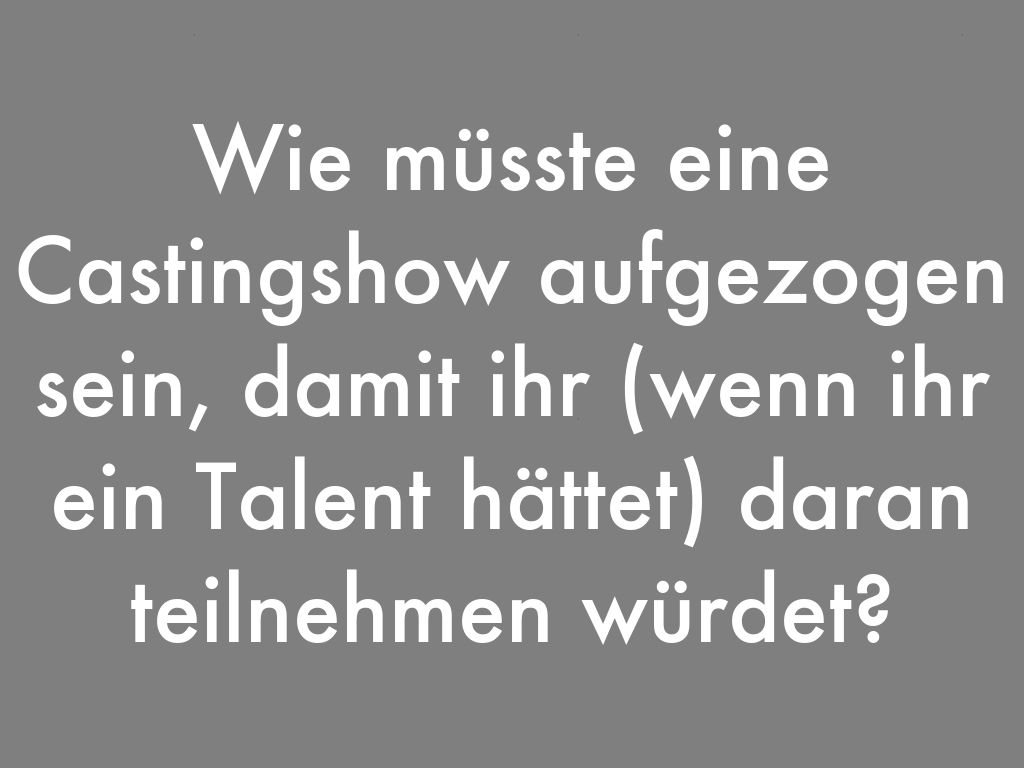 Wie müsste eine Castingshow aufgezogen sein, damit ihr (wenn ihr ein Talent hättet) daran teilnehmen würdet?