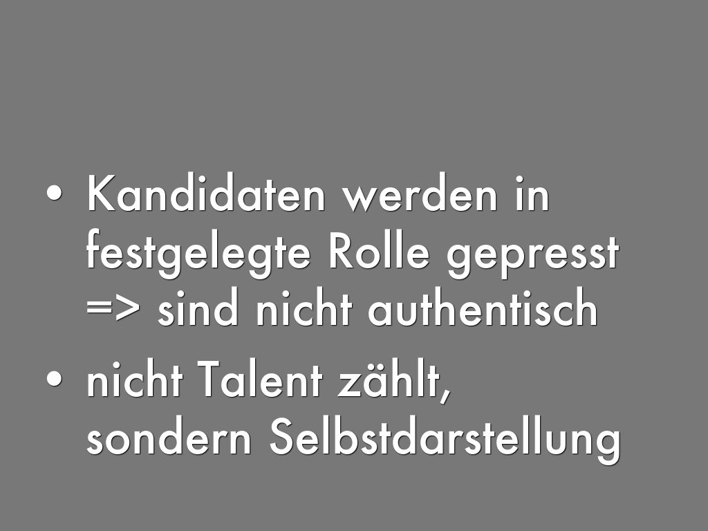 - Intention: Nicht Talent, sondern Selbstdarstellung