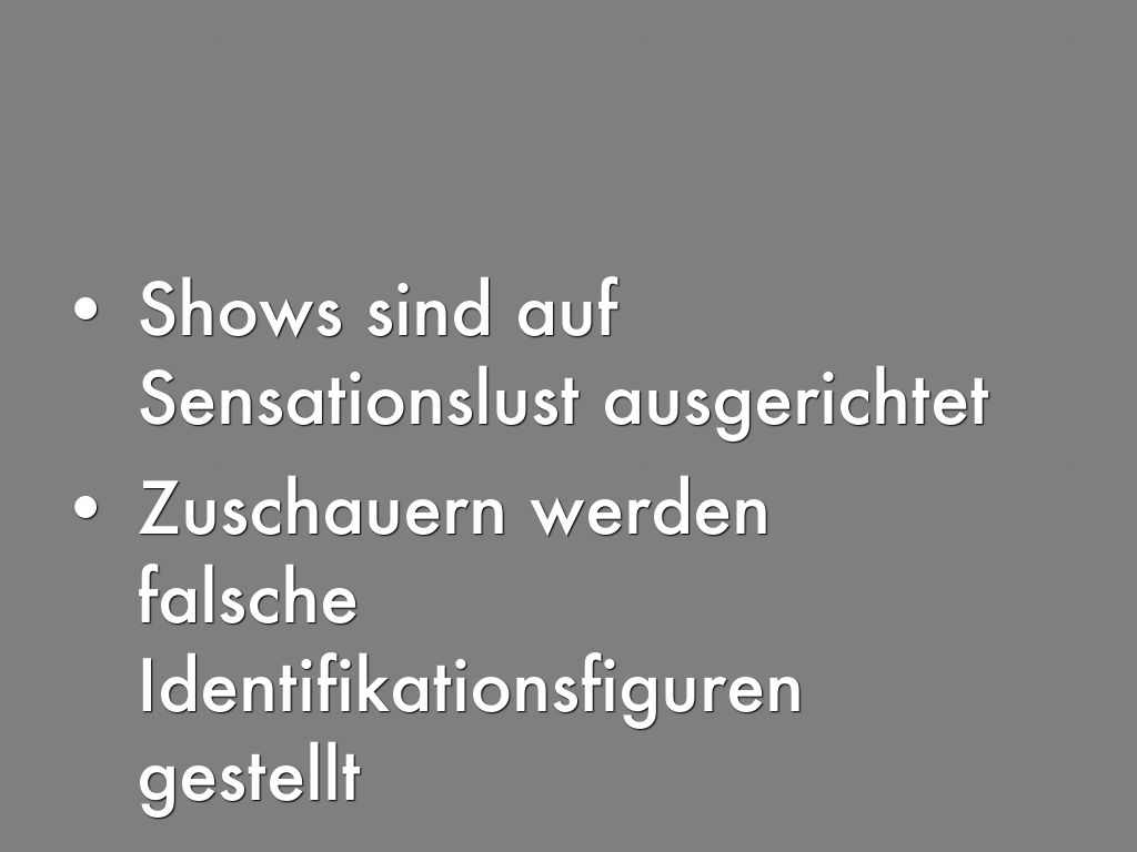 - Shows sind auf Sensationslust ausgerichtet