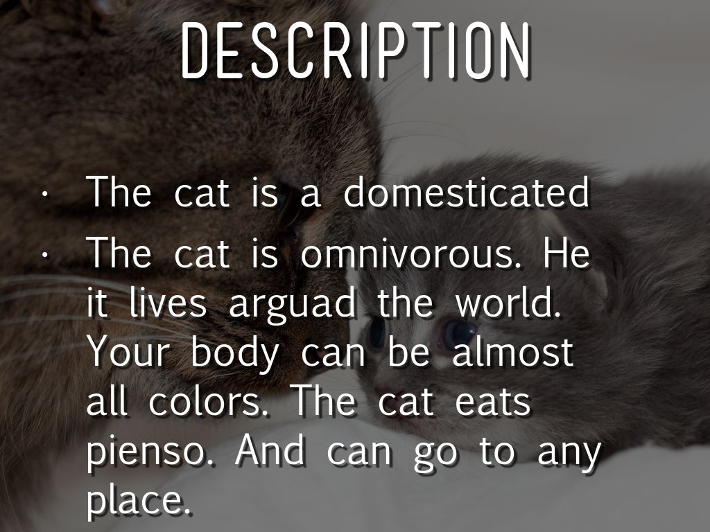 The cat is omnivorous. He it lives arguad the world. Your body can be almost all colors. The cat eats pienso. And can go to any place.
