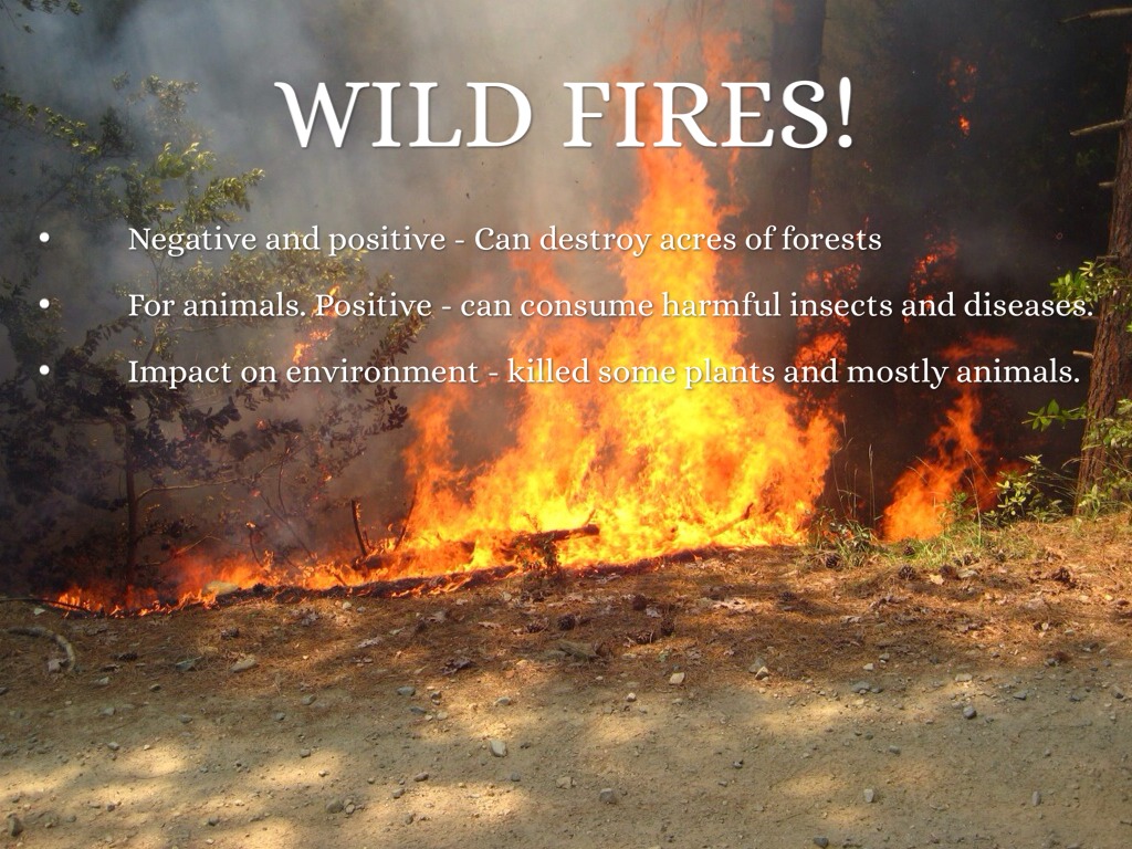 • Negative and Positive: Negative - Destroys animals shelter and also effect crops and animals.