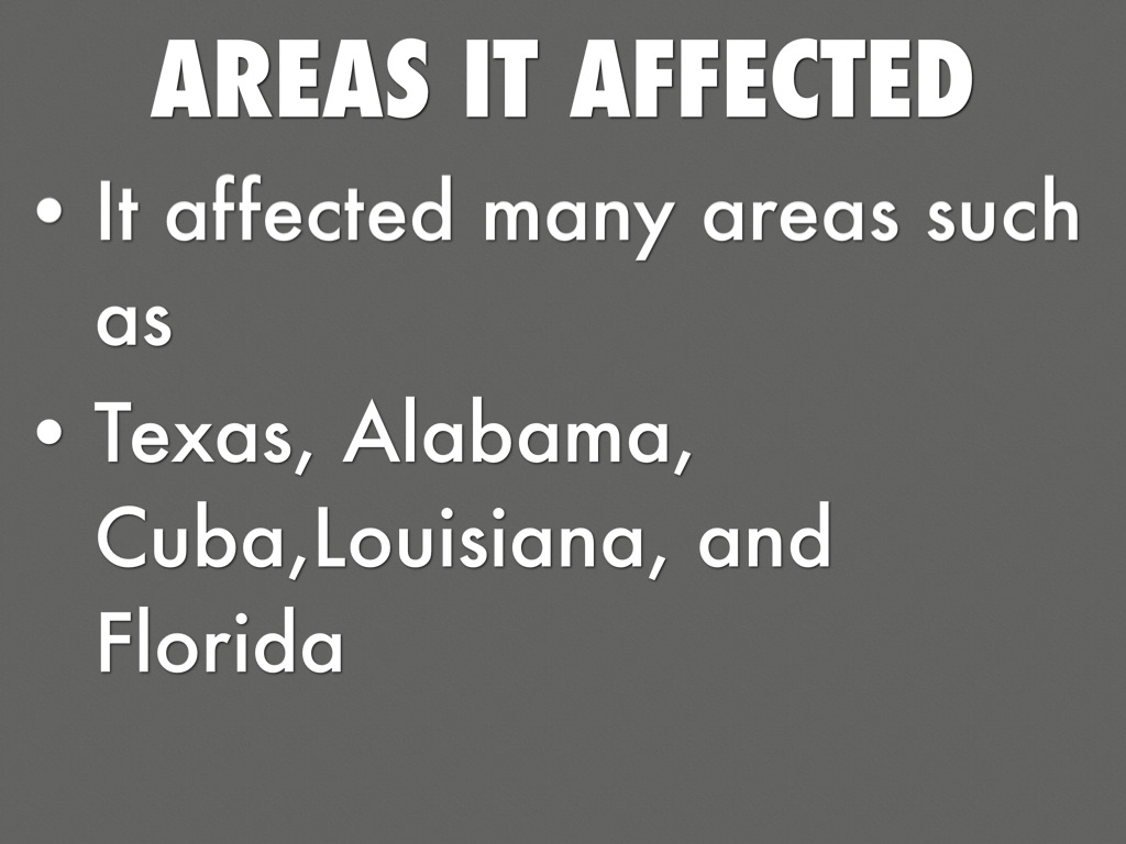 Texas, Alabama, Cuba,Louisiana, and Florida
