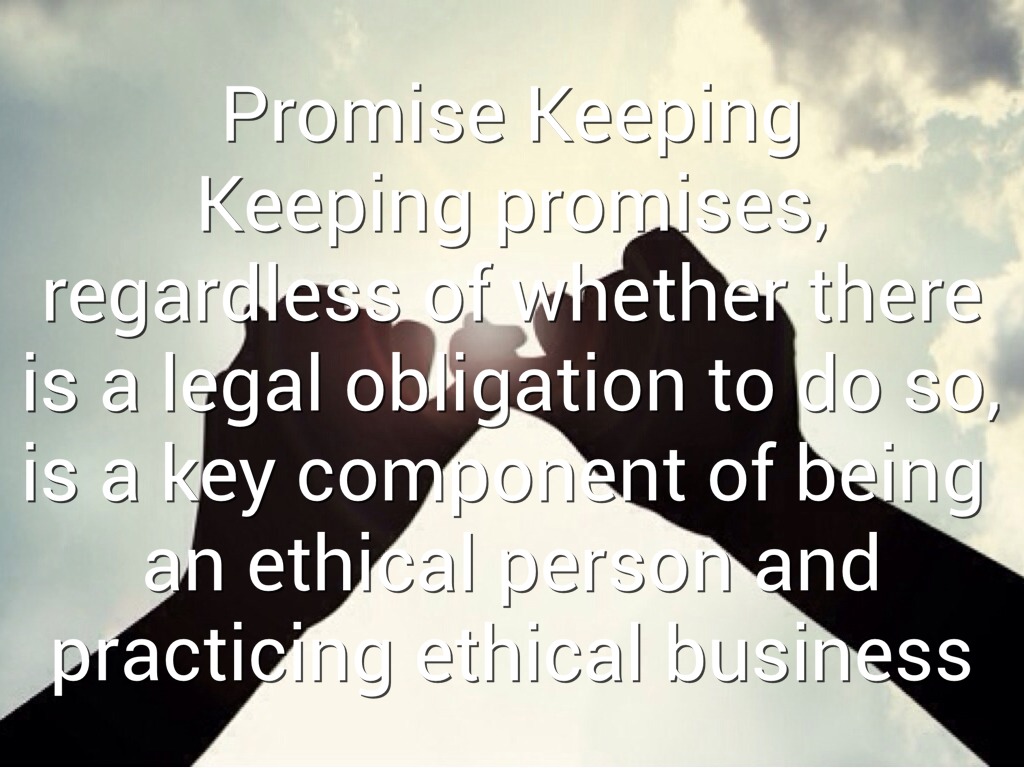 Keeping promises, regardless of whether there is a legal obligation to do so, is a key component of being an ethical person and practicing ethical business