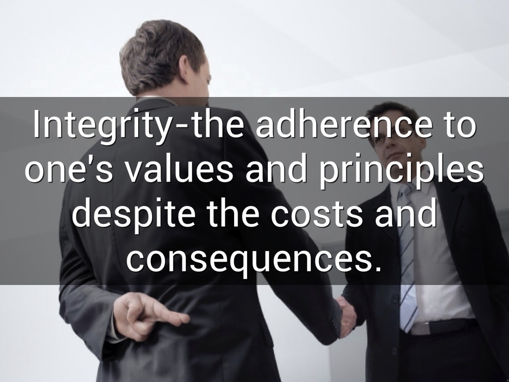 Integrity-the adherence to one's values and principles despite the costs and consequences.