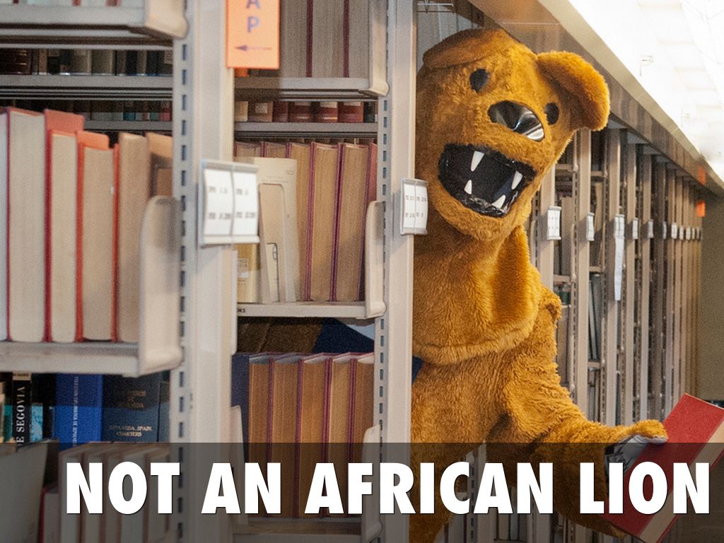 Not to be confused with an African lion, the Penn State mascot is a mountain lion. It is called the Nittany lion in reference to Mount Nittany, which, legend says, rose up from the burial site of princess Nita-Nee, who led her Native American tribe to central Pennsylvania.