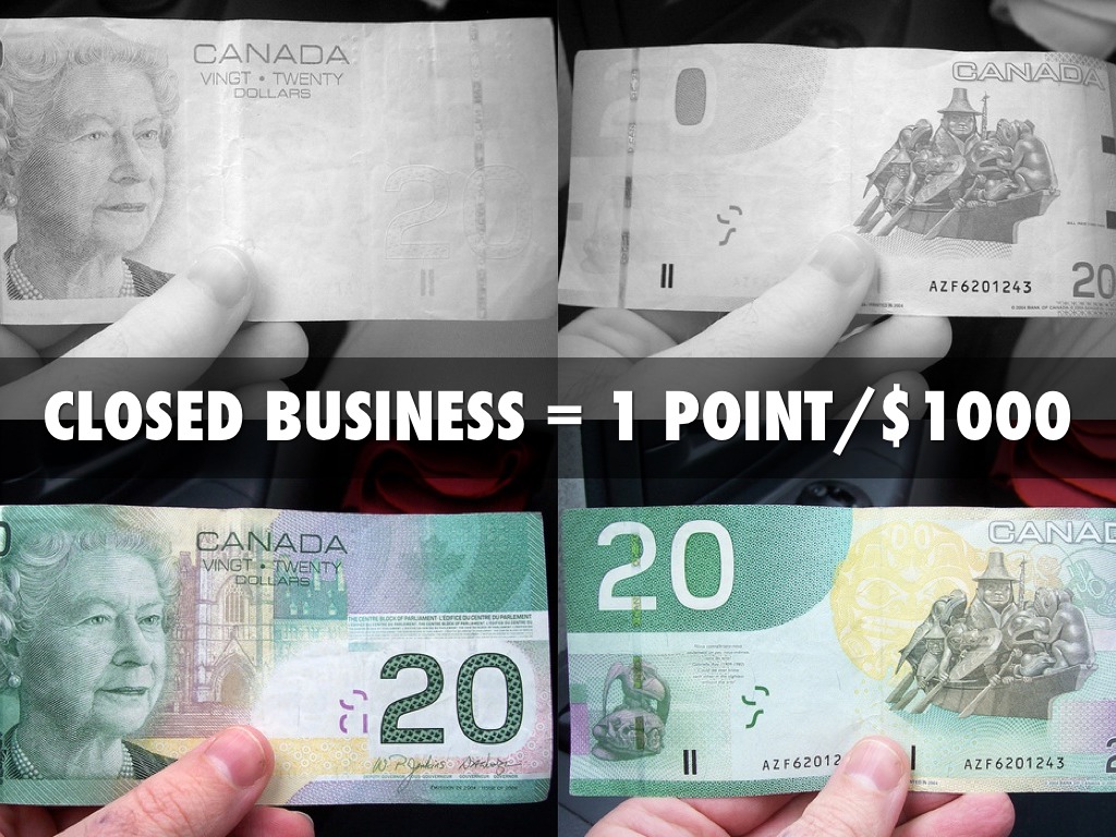 CLOSED BUSINESS = 1 POINT/$1000