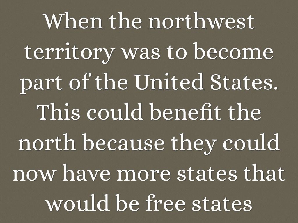 When the northwest territory was to become part of the United States. This could benefit the north because they could now have more states that would be free states