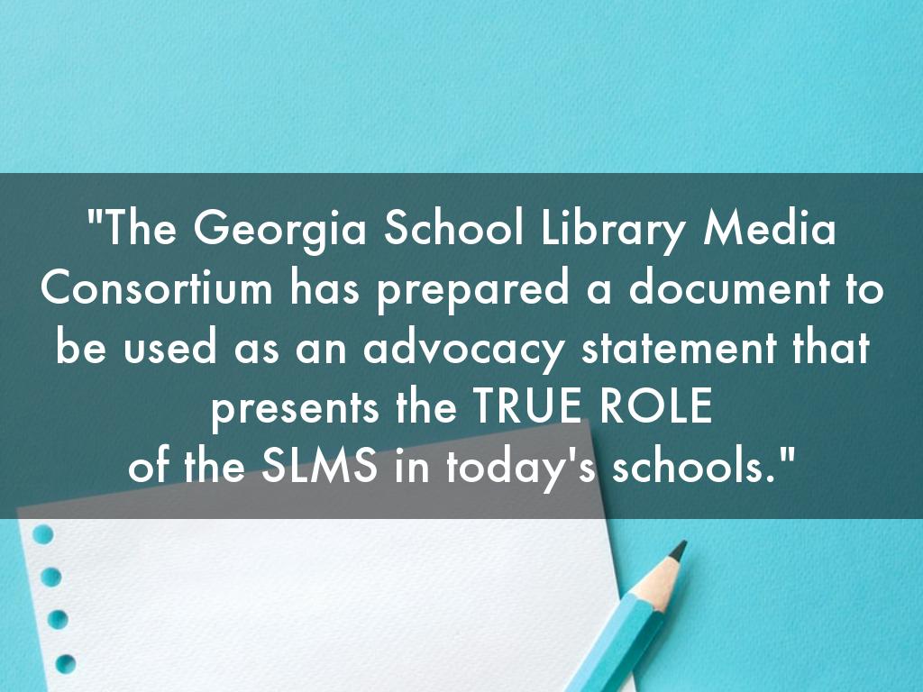 "The Georgia School Library Media Consortium has prepared a document to be used as an advocacy statement that presents the TRUE ROLE