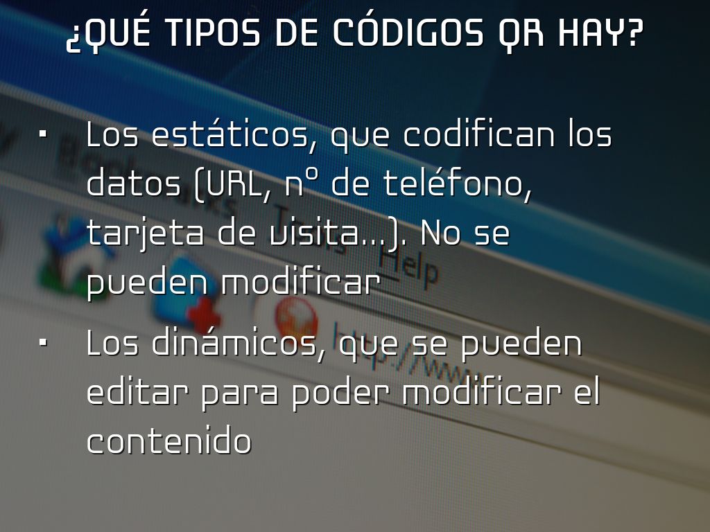 Los estáticos, que codifican los datos (URL, nº de teléfono, tarjeta de visita...). No se pueden modificar