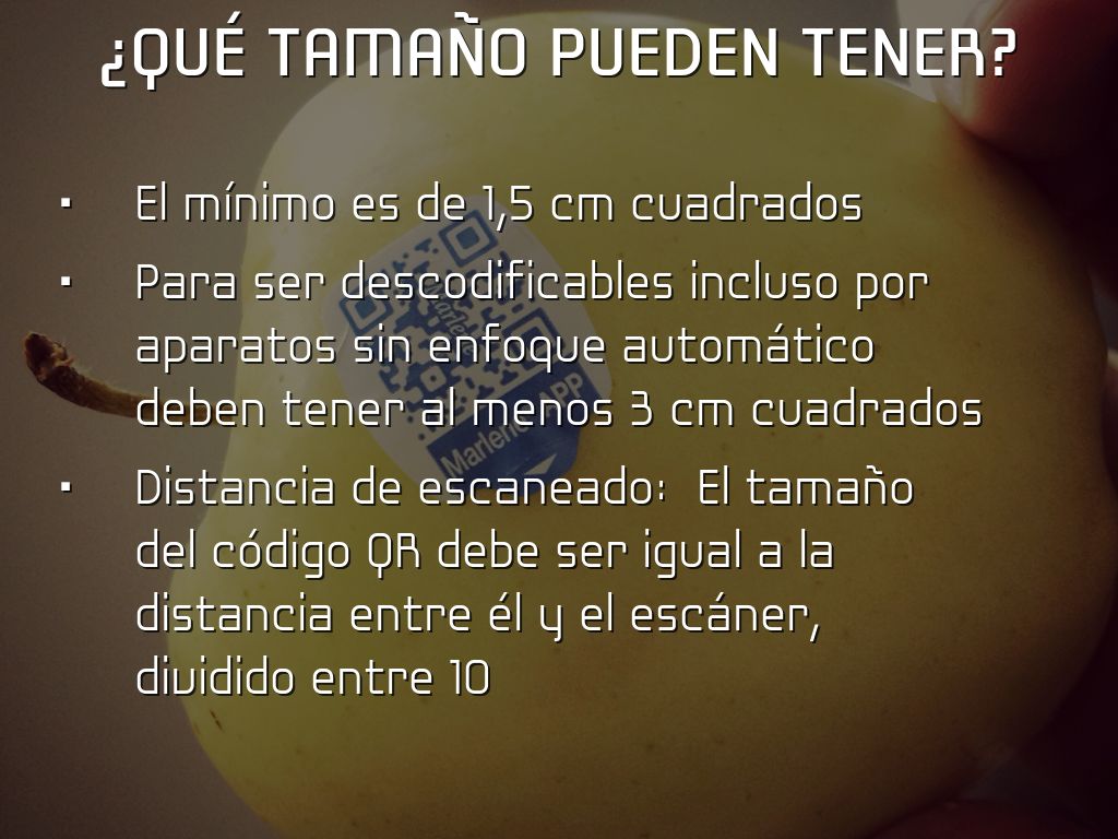Para ser descodificables incluso por aparatos sin enfoque automático deben tener al menos 3 cm cuadrados