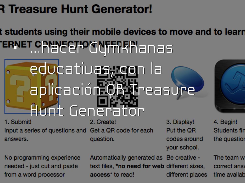 ...hacer Gymkhanas educativas, con la aplicación QR Treasure Hunt Generator